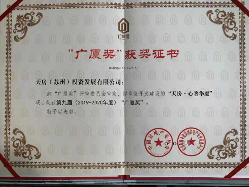 牢记嘱托 见行见效 | 津投城开盛庭花园产业化住宅项目荣获广厦奖